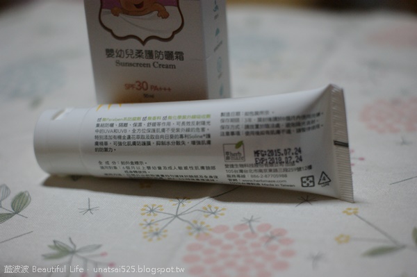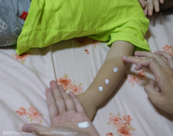 小波寶這陣子外出都是用草繹嬰幼兒柔護防曬霜來防曬,目前都沒有出現肌膚之不適