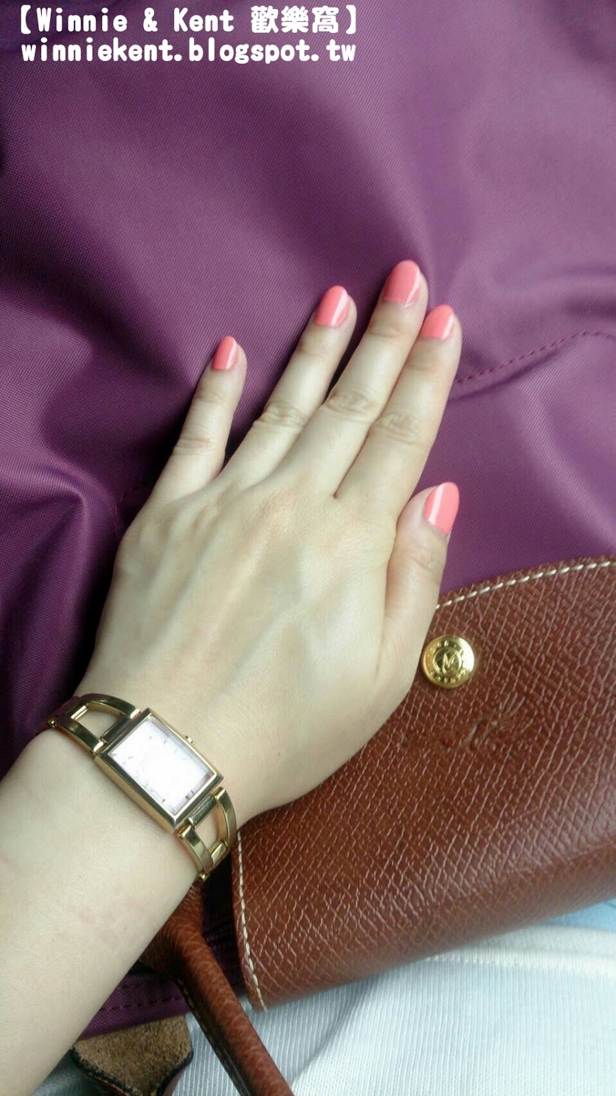 和包包很搭 草莓牛奶色和錶面一樣
