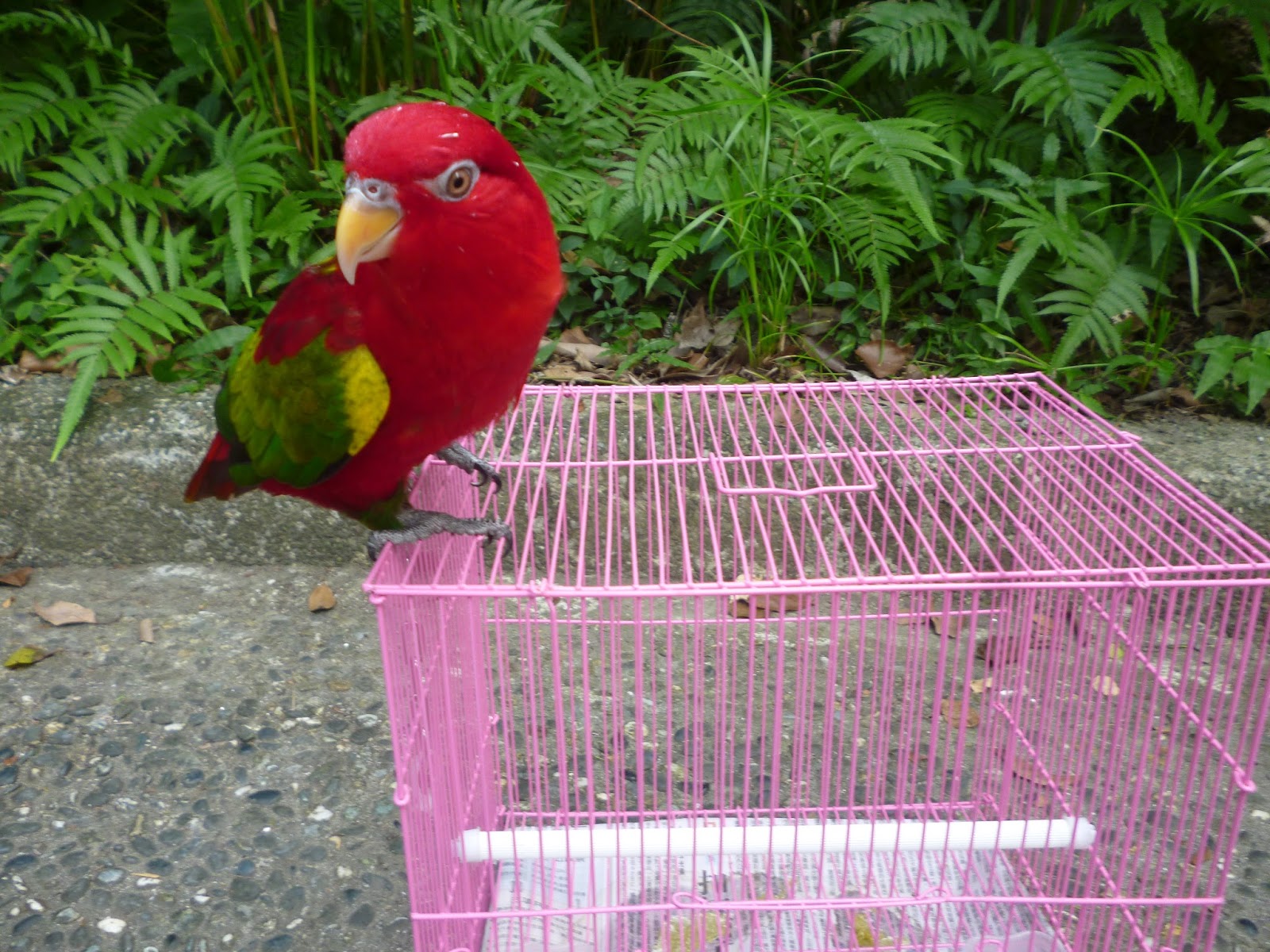 飼養鸚鵡的女士帶寵物到植物園玩耍