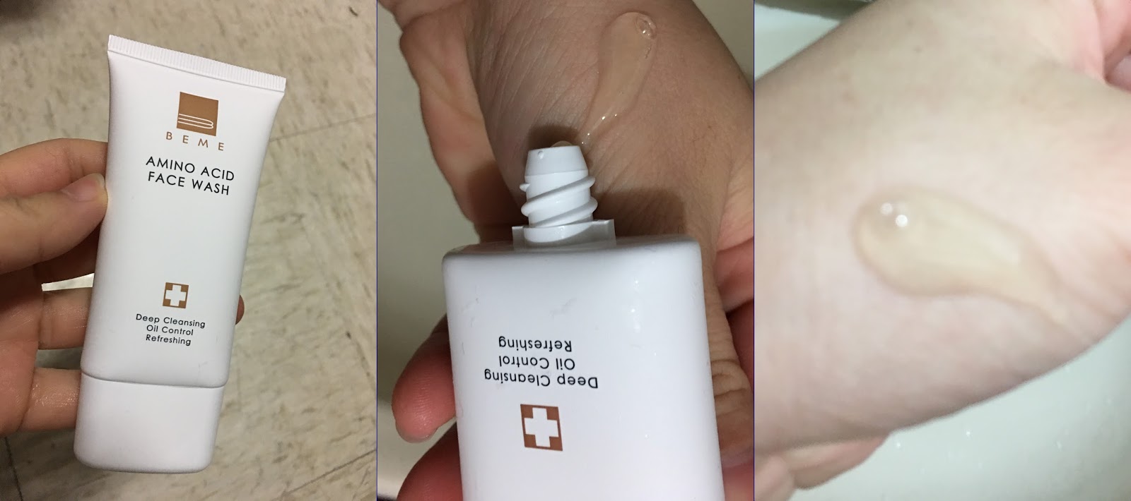 這瓶BEME水蓮花胺基酸保濕潔面乳在擠壓出來看到是透明色的潔面乳,不像外面賣的洗面乳內有有皂基…等等添加物。