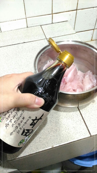 然後用手溫柔的將醬油跟魚肉攪拌均勻後,放置約15分鐘。