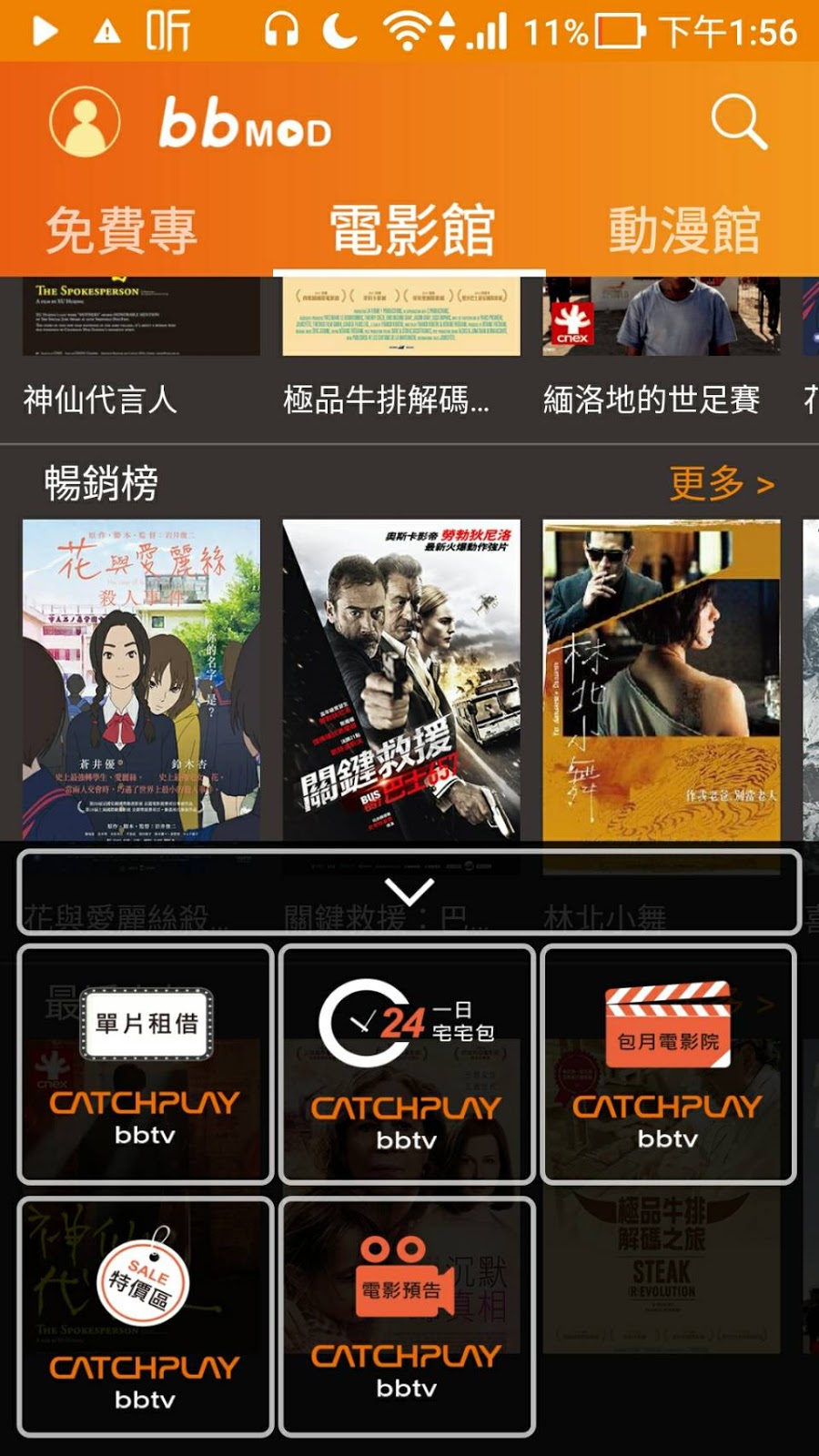 使用了 bbmod,發現他可以配對機上盒,如圖所示。它也有強檔推薦,免費電影方便我們手機看片