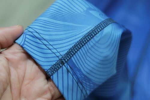 VOUX機能緊身褲是採用了今年流行的3D立體轉折紋印花,讓增加視覺上的立體層次感。選擇的是中藍色的緊身褲,在褲頭部位是深藍色的,深色的視覺讓肚子能看起來顯瘦點。