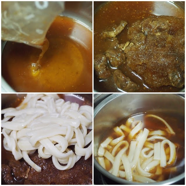 先撈出麵體及牛肉塊,加熱的方法有微波加熱、電鍋、瓦斯爐加熱,不管是何種加熱法,5分鐘快速上桌。