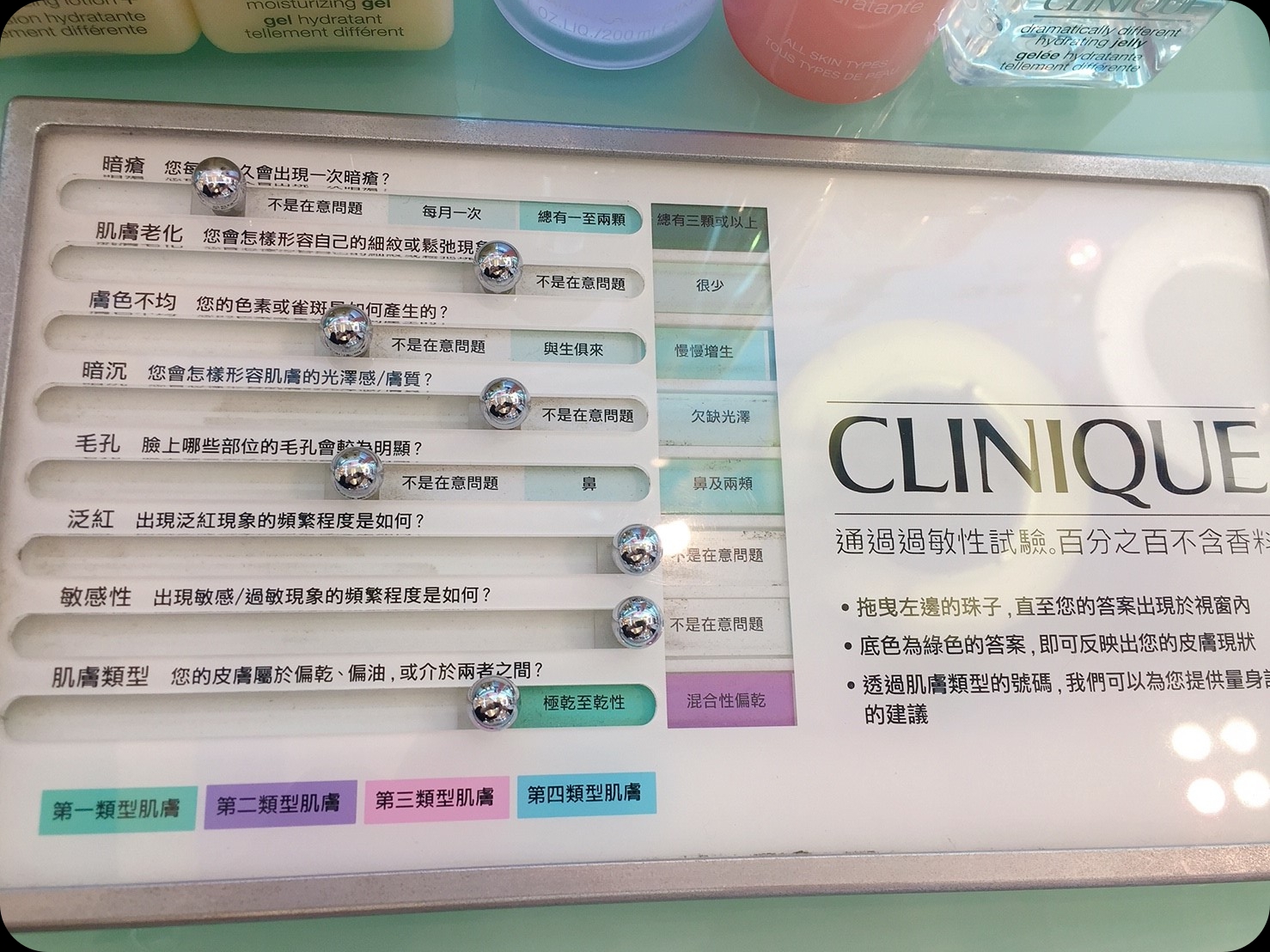 今天到倩碧請櫃姐檢測膚質是屬於哪一種類型,